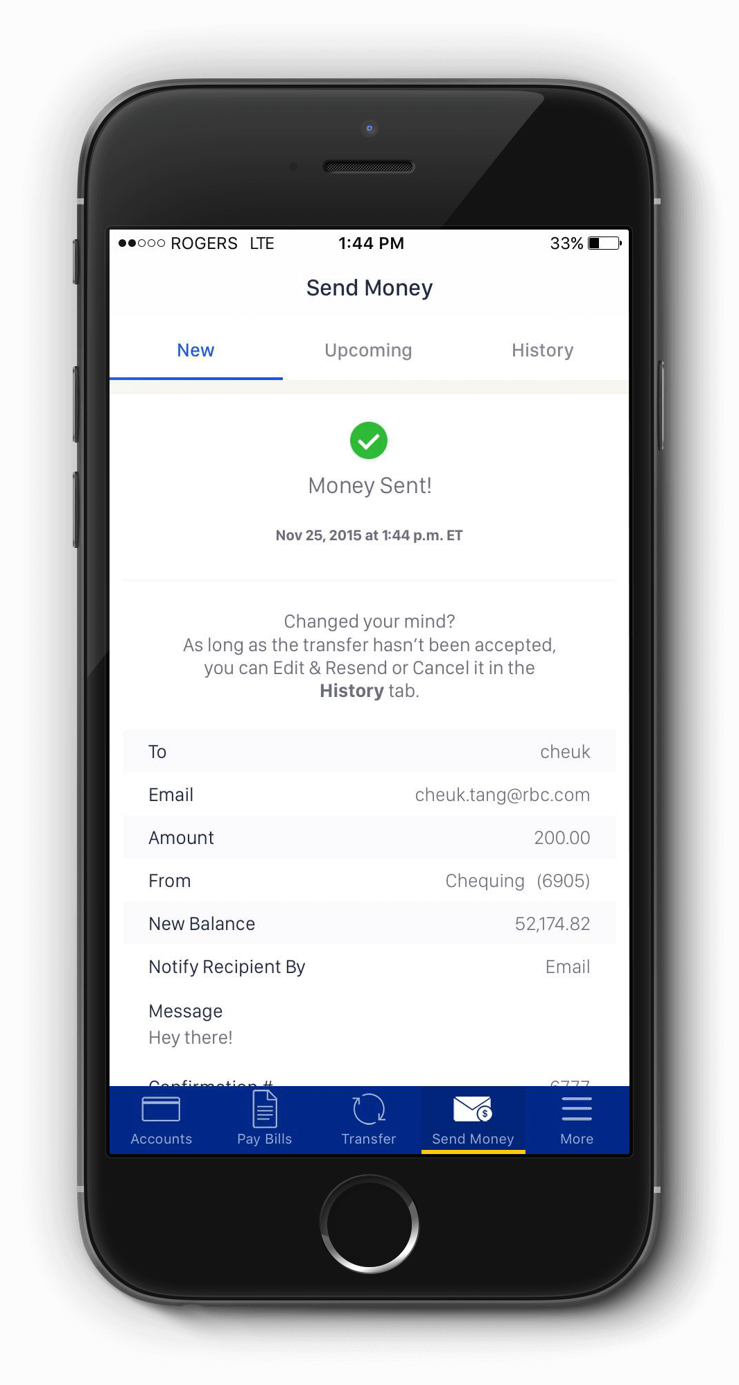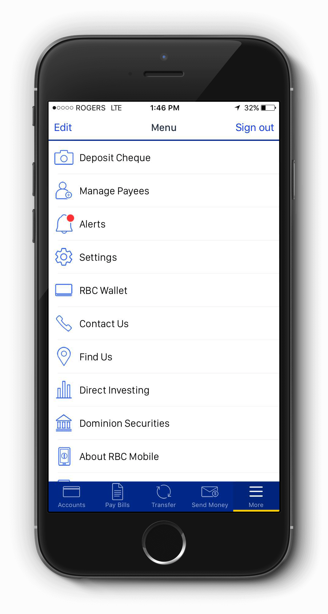 The RBC Mobile app has been completely rebuilt using Apple technology and features, like Touch ID. It looks and feels familiar, so less time is spent learning how to use it and more time focusing on everything it helps you to do. Deposit a cheque on the way out to dinner. Send money to a friend while they’re grabbing you a coffee. Check account balances – without signing in – while in the grocery store lineup.